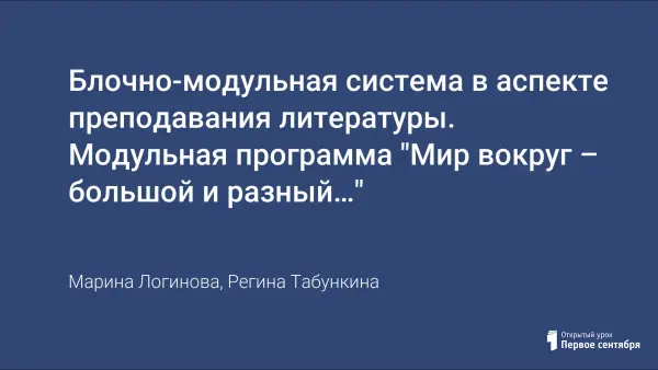Блочно-модульная система в аспекте преподавания литературы. Модульная программа "Мир вокруг – большой и разный…"