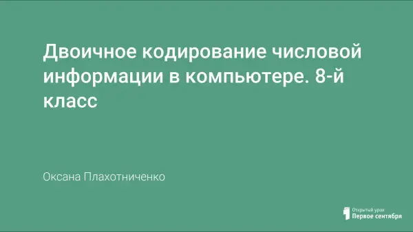 На этом уроке школьники учатся представлять целые числа в знаковой ячейке памяти, производить простейшую операцию сложения с байтовым представлением числа, развивают познавательный интерес к предмету через сравнение выполнения операций над целыми числами человеком и компьютером, повышают информационную культуру, приобретая знания принципов работы электронных устройств.