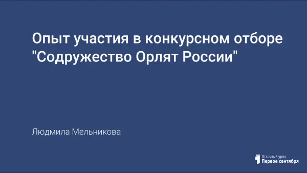 Опыт участия в конкурсном отборе "Содружество Орлят России"
