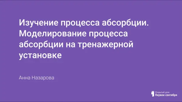 Цель урока: обучить процессу абсорбции и навыкам по обслуживанию процесса; развивать у будущих производственников умение применять имеющиеся знания на практике; совершенствовать экологическое воспитание учащихся.