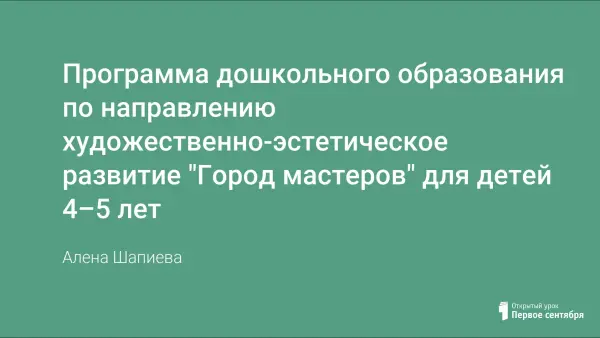 Целью «Города мастеров» является ознакомление детей с различными видами ручного труда. Приобщение дошкольников к художественной культуре и развитие творческих способностей, через различные техники мастерства создания поделок.