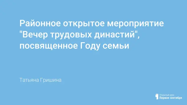 Открытое районное мероприятие, посвященное Году семьи, с целью повышения воспитательного потенциала семьи; формирования коммуникативно-воспитательного пространства, направленного на приоритет духовно-нравственных ценностей; социальную преемственность поколений.
