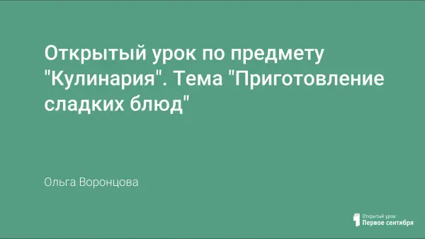 Основной целью урока является формирование у учащихся профессиональных знаний по технологии приготовления сладких блюд, напитков и их разновидностей; основных требований качества и хранения готовых блюд; подсчета сырья, необходимого для приготовления данных блюд. Урок был проведен в форме деловой игры.