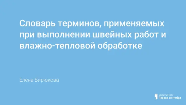 Словарь терминов, применяемых при выполнении швейных работ и влажно-тепловой обработке