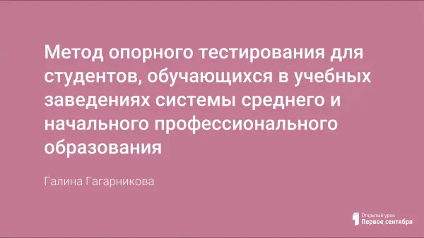 Метод опорного тестирования для студентов, обучающихся в учебных заведениях системы среднего и начального профессионального образования