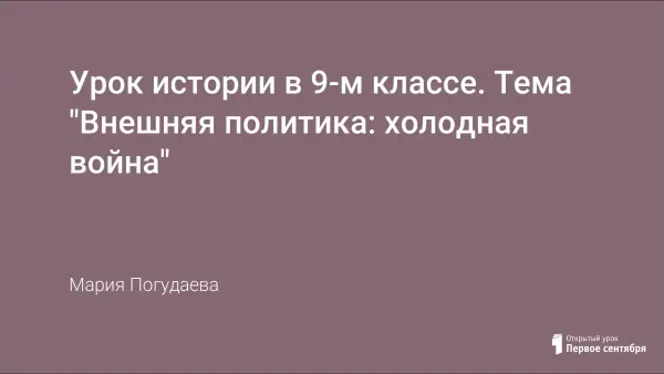 Урок является четвертым уроком в разделе «СССР в 1945–1953 гг». Урок включает различные формы организации учебной деятельности: мозговой штурм, работу с историческим документом, учебным текстом, картой.