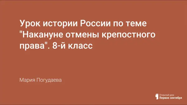 Отмена крепостного права - важнейшая веха в истории XIX века, начало новой, буржуазной России. Анализ причин крестьянской реформы, рассматриваемый на уроке, приводит к пониманию исторической неизбежности падения крепостного права.