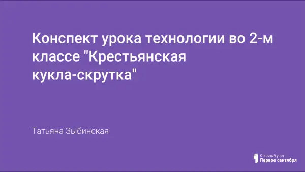 Интегрированный урок технологии ставит задачи: познакомить учащихся с традициями крестьянской семьи - изготовлением тряпичной куклы-скрутки; сформировать представление о красоте и простоте конструкции куклы-скрутки и деталей её наряда; познакомить с художественными свойствами ткани: мягкостью, цветом, орнаментацией; обучить приёмам выполнения куклы из ткани в народном костюме на основе традиционных приёмов: скручивания, присборивания ткани, соединения тканей при помощи тесьмы.