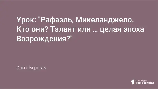Данная тема помогает учащимся рассмотреть и понять один из периодов эпохи Возрождения (Проторенессанс). Воспитывает чувства прекрасного, нравственного идеала на примере произведений Рафаэля и Микеланджело. Развивает художественный вкус. Учит анализировать и сравнивать, работать в группах. Высказывать свою точку зрения и отстаивать ее.
