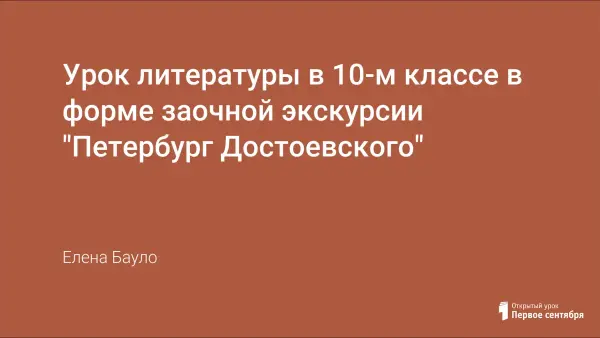 Цели занятия: раскрыть образ Петербурга в творчестве русских классиков; подготовить учащихся к восприятию романа Ф.М. Достоевского «Преступление и наказание»; развивать умение учащихся использовать интернет-ресурсы при подготовке творческого проекта по предмету (заочная экскурсия).