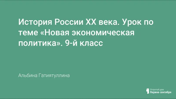 Цель урока: формирование у учащихся целостного представления о новой экономической политике.