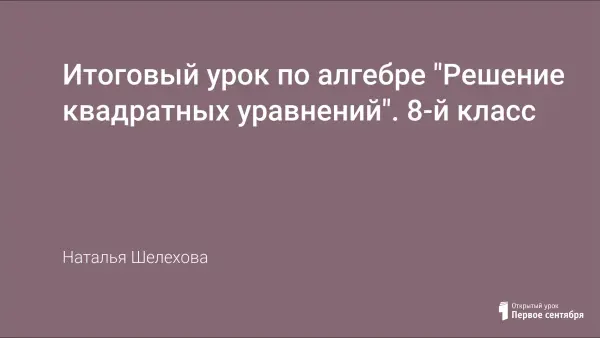 Данный урок проводится как урок закрепления и систематизации по теме “Квадратные уравнения”. На этом уроке показывается межпредметная связь, обучающиеся узнают историю образования квадратных уравнений. Развивается математический кругозор и повышается интерес к предмету.