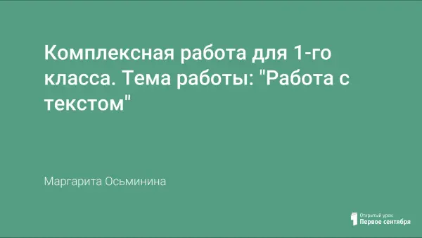 Представлена комплексная работа для 1-го класса по работе с текстом.