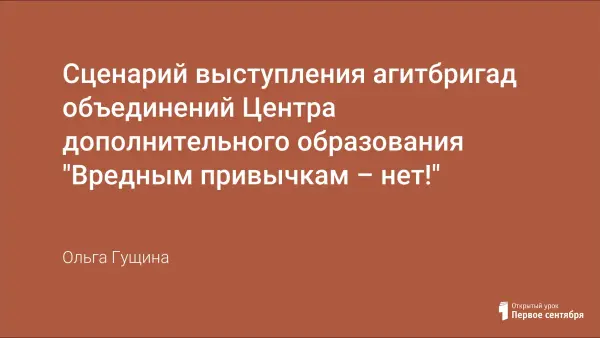 Данный сценарий может использоваться в центрах дополнительного образования и во внеклассной работе в школе. Форма проведения – выступление агитбригад.