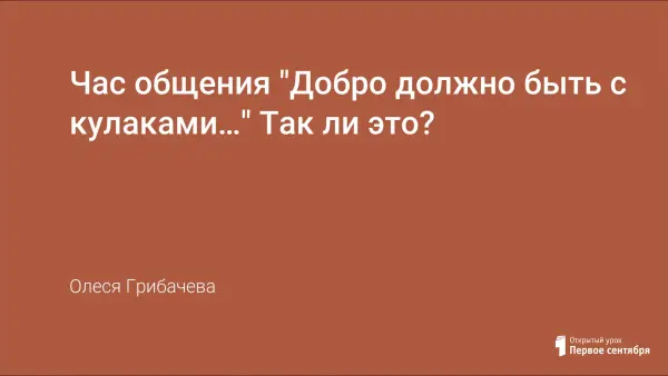 На данном уроке рассматривается вопрос о противостоянии добра и зла. Учащиеся, выделяя нравственную сторону жизненных явлений и поступков, отвечают на сложный вопрос о том, может ли добро быть с кулаками. Используется не только тренинг жизненных ситуаций, но и анализ субъектного опыта детей.