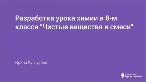 Цель урока – дать понятия чистого вещества и смеси и научить учащихся применять практически полученные знания в повседневной жизни. Для этой цели используются различные способы выполнения заданий учащимися на развитие познавательных интересов, самостоятельного мышления и воспитания культуры труда.