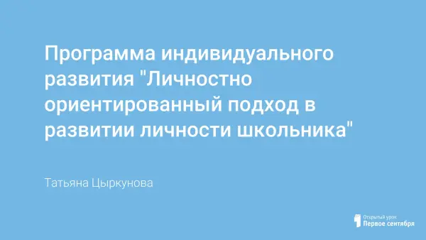 Эта программа индивидуального развития предполагает развитие личности учащегося, психологическую, социальную помощь и поддержку, формирование общей культуры, усвоение основных норм и правил поведения. Формируя такую личность, мы прежде всего должны видеть в нем человека с самобытной индивидуальностью, обладающего единством духовно-нравственного и правового долга.