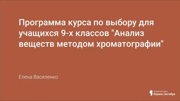 Программа предназначена для развития познавательного интереса учащихся, осознанного выбора естественно-научного профиля. Содержание курса раскрывает основы современного метода исследования веществ на основе различия их физико-химических свойств, позволяет учащимся получить ценную информацию, знания в области естественных наук.