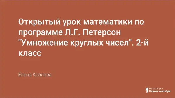 Урок открытия нового знания проводится по плану программы. Цель урока: развивать положительное отношение к изучению математики, способность к осознанию и преодолению своих трудностей, сформировать умение умножать круглые числа новым способом; учить ориентироваться в своей системе знаний; развивать умение анализировать, рассуждать, делать обобщения, выводы; развивать умение принимать и сохранять учебную задачу.