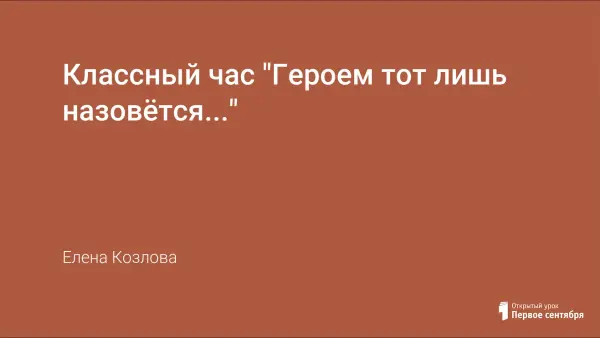 Цель классного часа: способствовать осознанию величия подвига и роли героев в историческом прошлом и настоящем Отчизны.