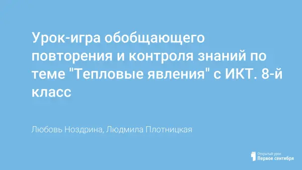 Урок-игра обобщающего повторения и контроля знаний по теме "Тепловые явления" с ИКТ. 8-й класс