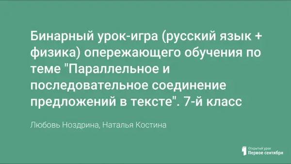 Бинарный урок-игра (русский язык + физика) опережающего обучения по теме "Параллельное и последовательное соединение предложений в тексте". 7-й класс