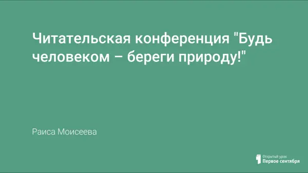 Цель конференции: создание условий для закрепления правил поведения на природе через совершенствование навыков выразительного чтения.