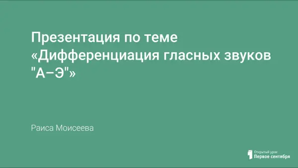 Представлена презентация по теме «Дифференциация гласных звуков "А–Э"».
