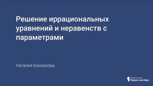 Занятие с целью познакомить обучающихся с решением иррациональных уравнений и неравенств с параметром, способствовать развитию навыка решения задач.