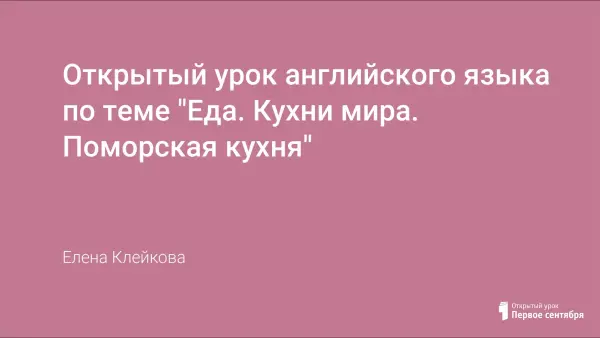 Урок составлен с использованием регионального компонента, что помогает сохранить культурное наследие нашего края. Дети знакомятся не только с кухнями разных стран мира, а также с жизненным укладом поморов, их традиционной едой, учатся вести себя в кафе ресторанах. Урок рассчитан для учащихся начальной и средней школы, построен с использованием ИКТ.
