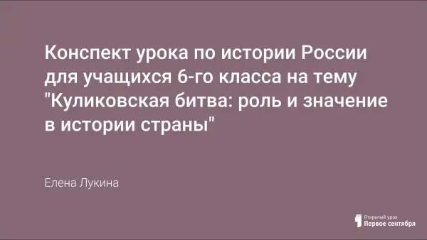 Конспект урока по истории России для учащихся 6-го класса на тему "Куликовская битва: роль и значение в истории страны"