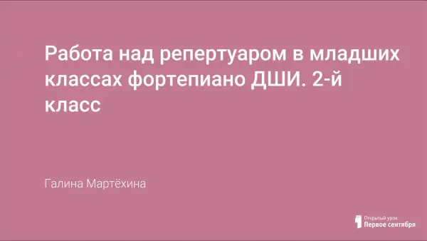 Представлен конспект урока во 2-м классе фортепиано. Определены цели, задачи, содержание урока. Рассмотрены направления работы над произведениями учебного репертуара на разных этапах разучивания и предложены рекомендации по организации и проведению урока, использованию эффективных методов работы.