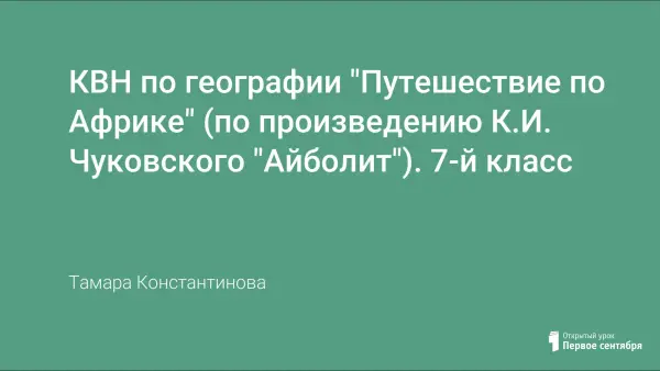 Урок КВН рассчитан на демонстрацию знаний после изучения темы «Природные зоны Африки». Дает возможность ученикам повторить в игровой форме и ранее изученный материал: особенности ГП Африки, рельеф, климат, природные зоны материка.