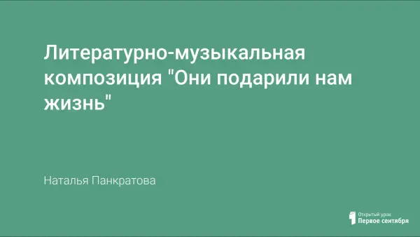 Литературно-музыкальная композиция представлена в рамках празднования 65-летней годовщины Победы русского народа в Великой Отечественной войне и рассчитана на учащихся 10–17 лет.
