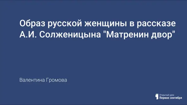Изучение произведения целесообразно проводить на основе сопоставительного анализа с повестями В.Распутина "Последний срок", "Прощание с Матёрой". Применение ИКТ позволяет качественнее анализировать произведения, выявить авторскую концепцию А.И. Солженицына, повышает мотивацию вдумчивого прочтения.