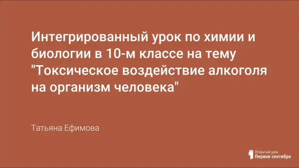 На уроке учащиеся рассматривают механизм действия спирта на клетки, органы и системы организма человека, исследуют влияние спирта на белковые молекулы. Ребята развивают логическое мышление и интеллект, а также стремление к знаниям.