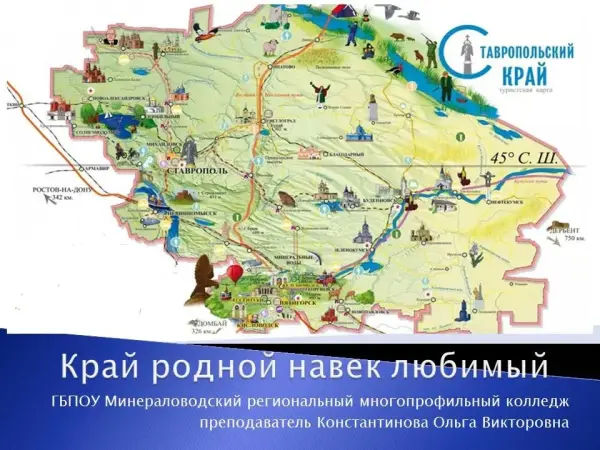 Игра «Край родной навек любимый» носит командный характер и посвящена региону Кавказские минеральные Воды, который находится на территории Ставропольского края. Вопросы ориентированы на знания обучающихся о своей малой родине и требуют от участников актуализации знаний, полученных в рамках краеведения. Общее время мероприятия 2 академических часа (90 минут), но можно разбить игру на несколько частей. В ходе игры происходит формирование умения работать в группах и сочетание их индивидуальных возможностей и знаний, что эффективно сказывается на процессе обучения, развития и воспитания подростков.