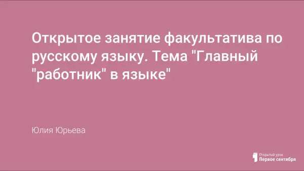 Открытое занятие факультатива по русскому языку. Тема "Главный "работник" в языке"
