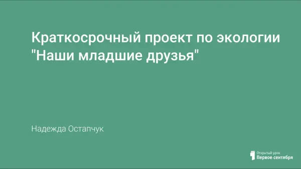 Краткосрочный проект по экологии "Наши младшие друзья"