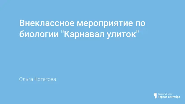 Карнавал дается в честь маленьких улиток, обладающих лечебными свойствами. Изучая этих животных, читая дополнительную литературу по малакологии, дети понимают, что улитки подкупают своей необычностью. Цель мероприятия: объединить учеников общим интересным делом, связанным с изучением необычных животных, которые стали считаться домашними.