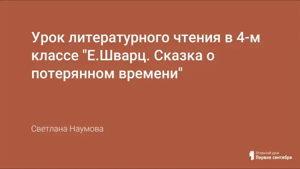 Урок литературного чтения в 4-м классе "Е.Шварц. Сказка о потерянном времени"