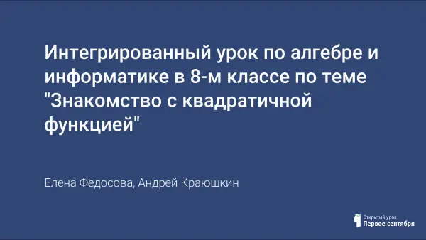 Интегрированный урок по алгебре и информатике в 8-м классе по теме "Знакомство с квадратичной функцией"