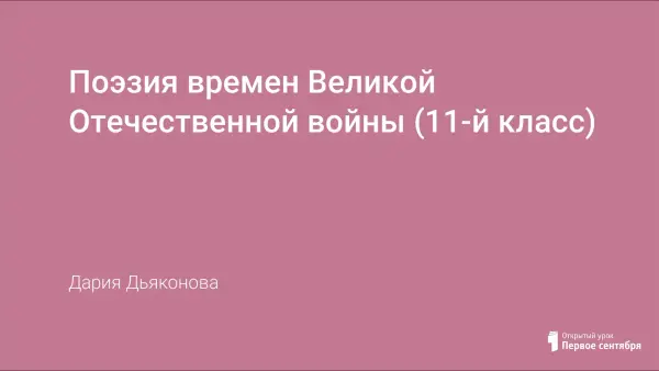 Цель урока – углубление знаний учащихся о войне 1941-1945 гг.; ознакомление учащихся с разнообразием и глубиной поэзии времен войны; выразительное чтение стихотворения, выступление перед аудиторией.