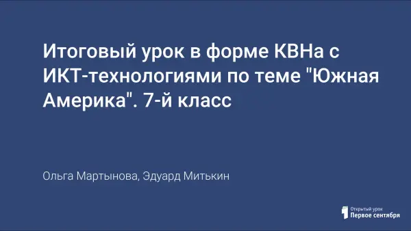 Итоговый урок в форме КВНа с ИКТ-технологиями по теме "Южная Америка". 7-й класс