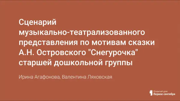 Сценарий музыкально-театрализованного представления по мотивам сказки А.Н. Островского "Снегурочка" старшей дошкольной группы