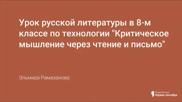 Технология развития критического мышления через чтение и письмо представляет собой совокупность разнообразных методов и приемов, направленных на то, чтобы заинтересовать ученика, то есть пробудить в нем исследовательскую, творческую активность. Примером использования данного приема на уроке является предлагаемый урок в 8-м классе.