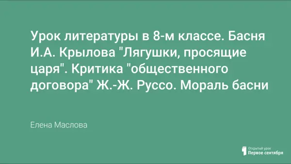 На уроке учащихся знакомятся с басней И.А. Крылова "Лягушки, просящие царя", развивают умение понимать иносказательный смысл басен и их мораль.