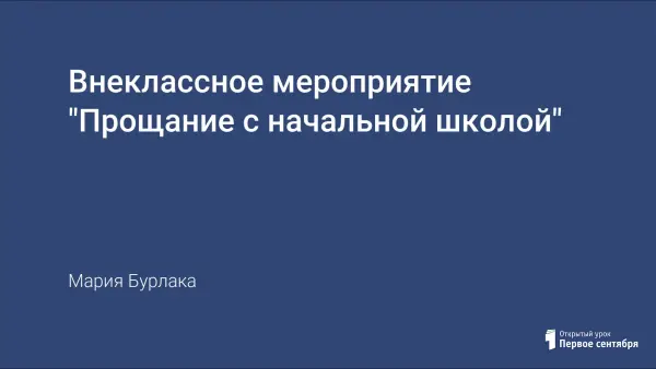 Мероприятие проводится в конце года в форме выпускного вечера. Цель данного праздника - показать результаты работы за весь период обучения в начальной школе; уровень воспитанности учащихся, уровень сплочённого коллектива: дети, родители, учитель; а также знакомство детей и родителей с новым классным руководителем.
