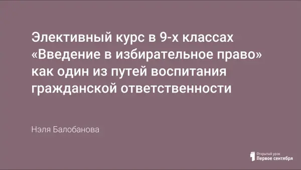 Данный курс призван заинтересовать учащихся, привлечь их внимание к участию в политических процессах страны, республики, города. Формирование у учащихся активной гражданской позиции на основе знания своих гражданских прав, в том числе избирательных, – одна из важнейших задач школы.