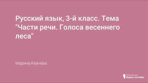 Цели урока: закрепить знания об умении различать части речи, развивать умение правильно употреблять их в предложении, в тексте и грамотно писать; прививать любовь к природе через живопись, музыку.
